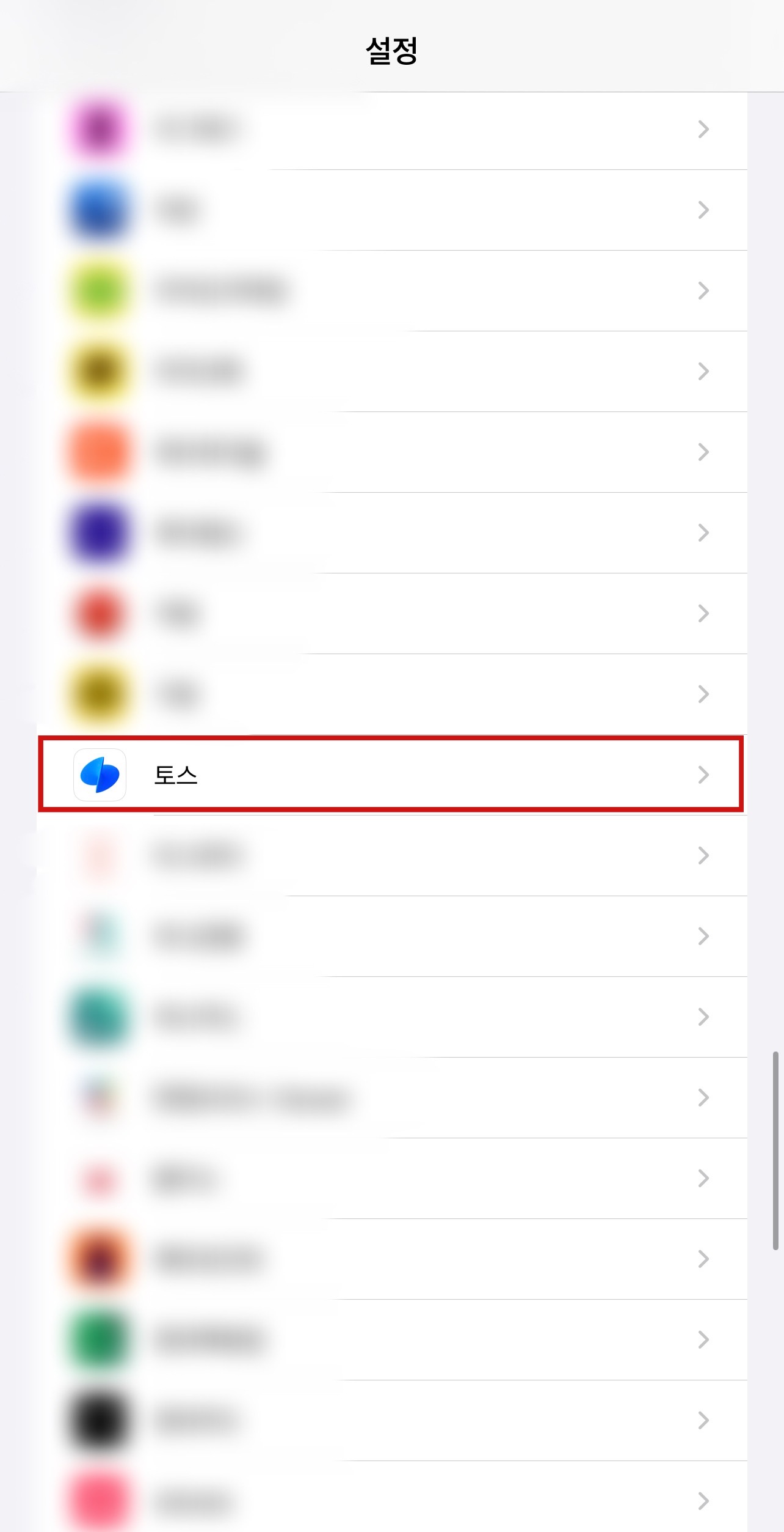 밑으로 내리다보면 어플이 ㄱㄴㄷ순으로 정렬되어 있습니다. 이 중에서 저는 우선 토스앱을 들어가볼게요. 앱 이름을 눌러줍니다.